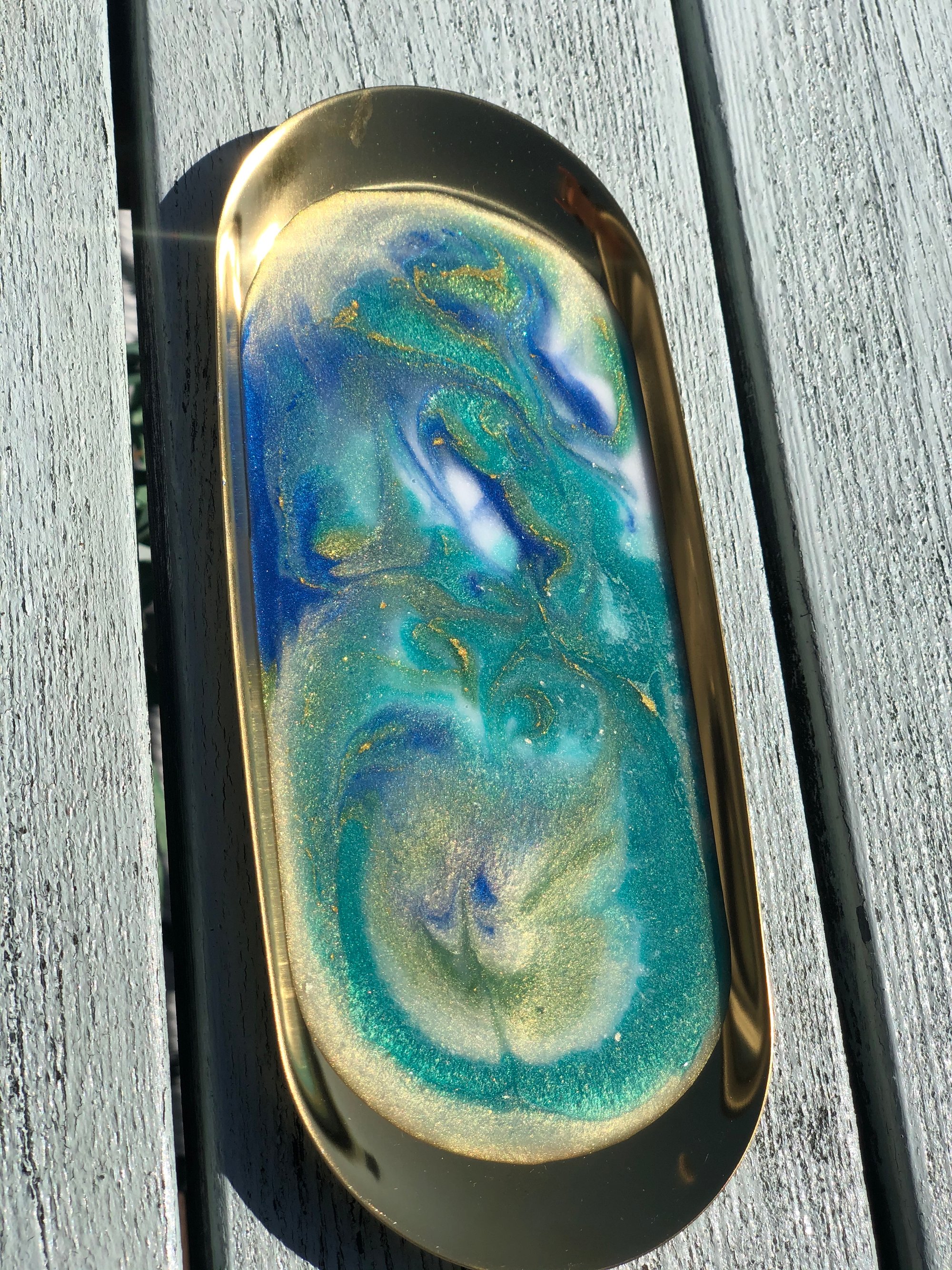 Perfect addition to your beauty room. Available in Gold & Silver filled with personalised colours. Please specify colour request in message when ordering - Handmade using resin.